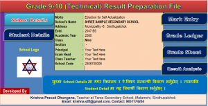 कक्षा ९–१० (प्राबिधिक धार तर्फ)को वार्षिक नतिजा तयारी गर्ने Excel Based ERMS फाइल